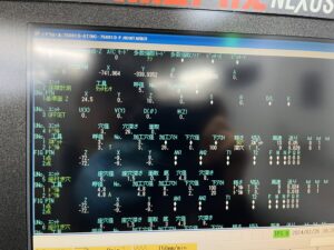 記録されると、オプショナルストップがかかり、止まっています。送りと回転を100に戻して、スタートボタンを押して、続けて加工していきます。